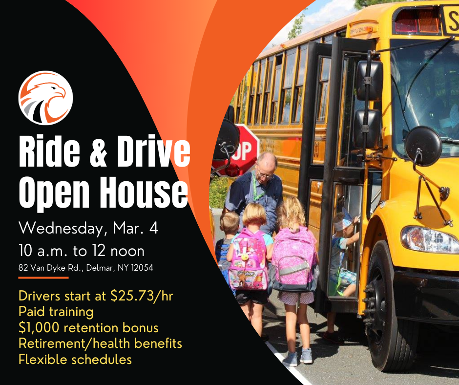 You can TEST DRIVE a school bus or just TAKE A RIDE on the bus with one of our experienced drivers. You can attend our Open House and learn more about what it takes to be a bus driver in Bethlehem.