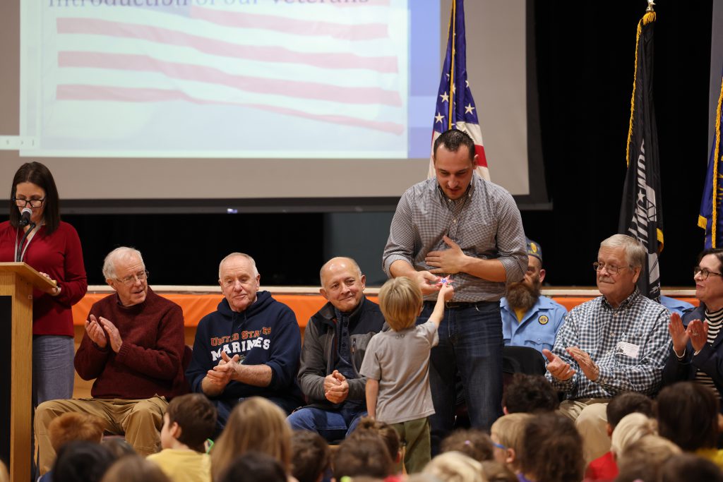 The event began with a warm welcome as students proudly escorted the veterans in their families into the gym. Students shared songs and messages of gratitude for the veterans’ service and sacrifice. A slideshow featuring photos of family members of both students and staff highlighted the personal connections with the Elsmere community.