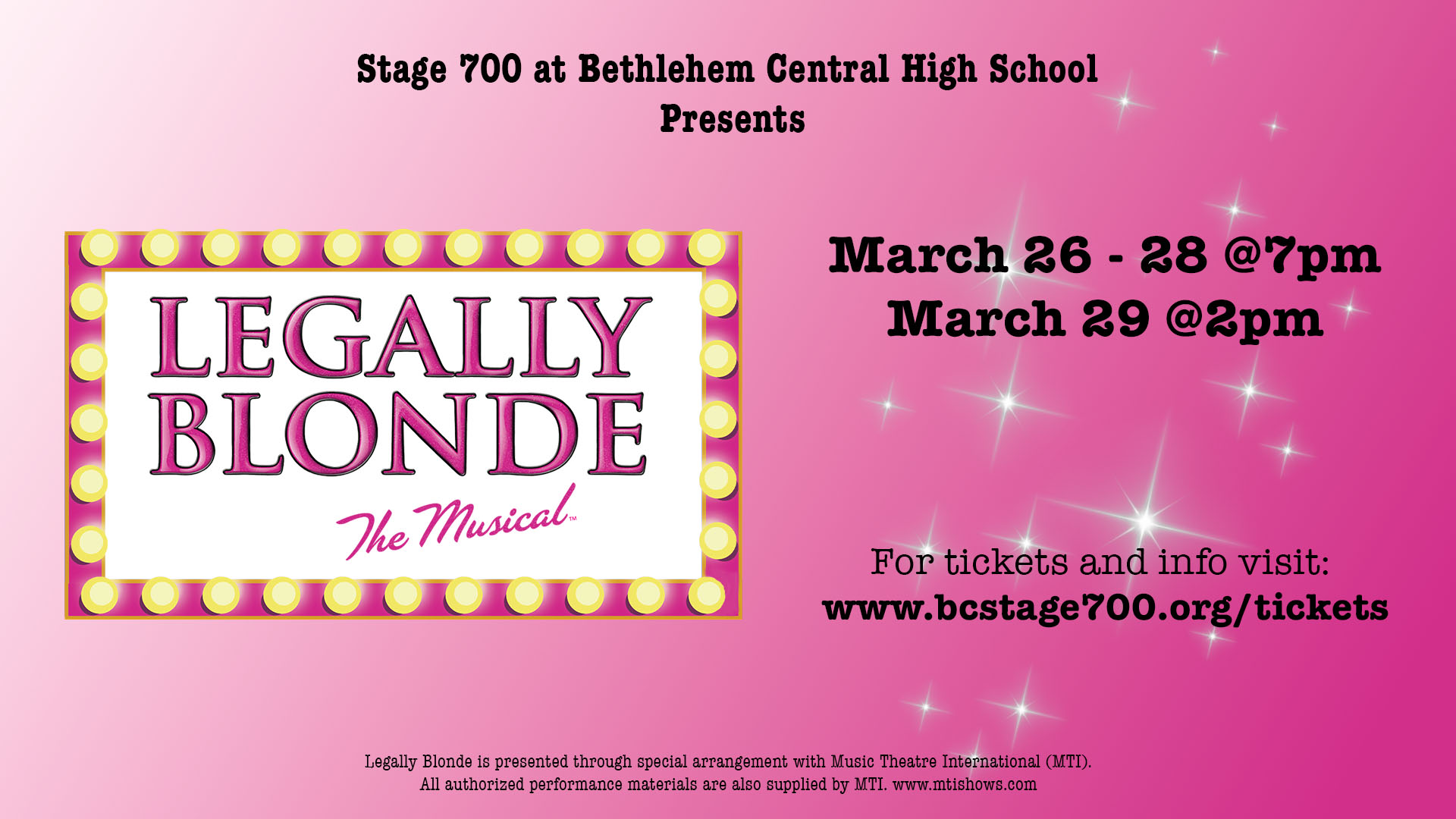 Don’t miss Legally Blonde The Musical, March 26 – 29, 2026, at Bethlehem Central High School! Tickets are on sale now for the spring musical presented by Stage 700.